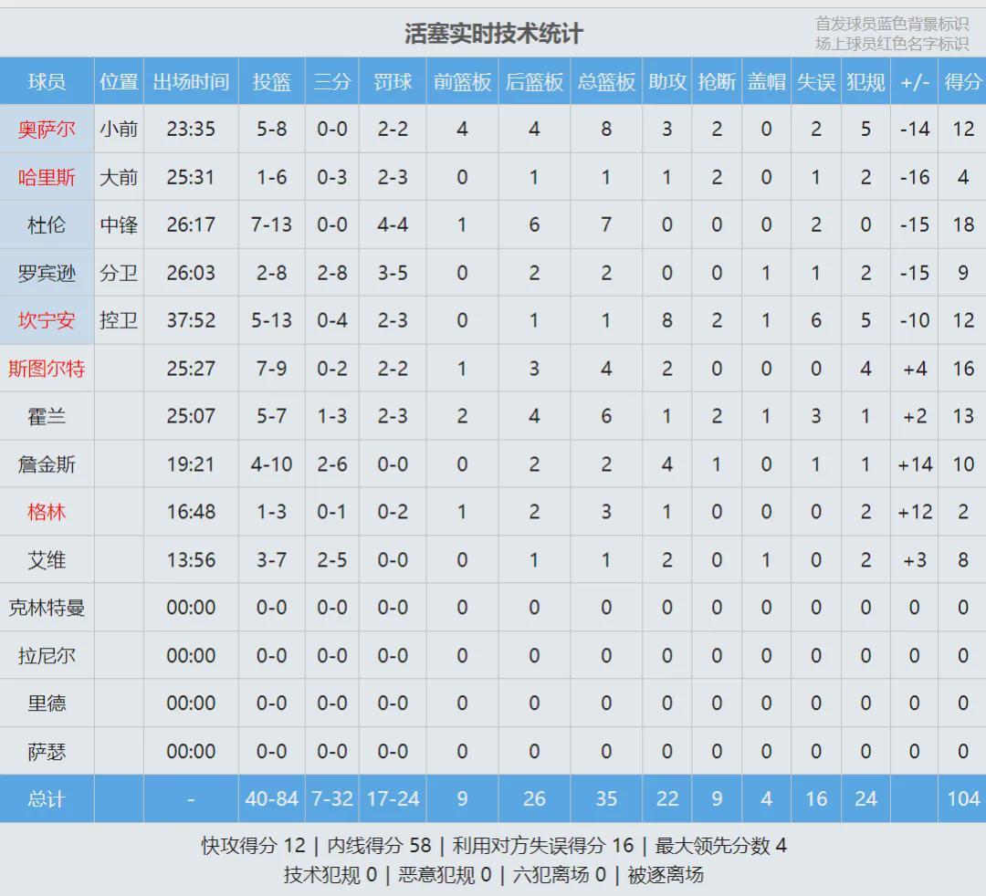 杜兰特上半场11中6拿到18分3助攻,谢泼德8中1只拿到5分1抢断。坎宁安上半场8中3仅得6分2助攻3失误,身背3次犯规。好在活塞内线给力,杜伦和斯图尔特联手得到17分7篮板。第三节开打,杜兰特挥舞死神镰刀,连续外线开炮。